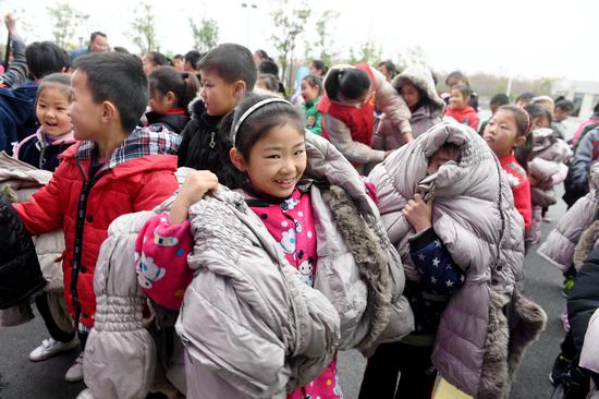 活动现场,我司向肥西县的留守儿童捐赠了1000件羽绒大衣,总计价值约150000元,发放给全县近千名留守儿童。