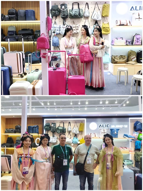 在旅行用品展区,一场别开生面的“汉服展示”成为吸引客流的亮点。三位身着精美汉服、气质典雅出众的年轻同事,巧妙化身“文化推荐官”。她们落落大方,笑容亲和,通过上身试背向到访摊位客商展示新款背包、多功能旅行包等产品。现场效果立竿见影,外国客商络绎不绝,驻足停留,争相与其合影留念。在这个流量为王的时代,旅行用品部先试先行,在流量竞争激烈的展会中成功开辟出一条差异化引流路径,吸引了大批客流的同时,也带来了不少意向订单。