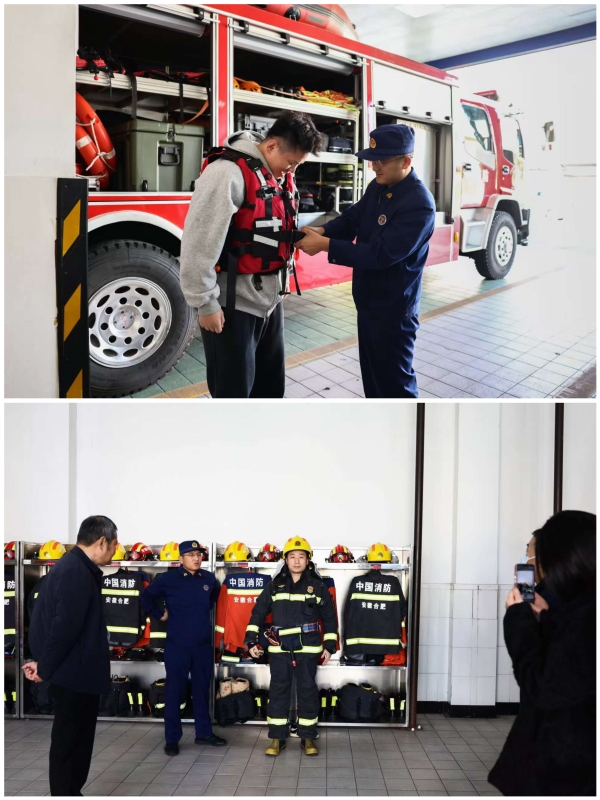 在消防设施器材讲解环节,消防救援员演示了消火栓操作方法,指导公司参观人员现场试穿消防服、应急救援服,进行消防水枪操作。大家现场动手、踊跃参与,体验一把消防救援。
